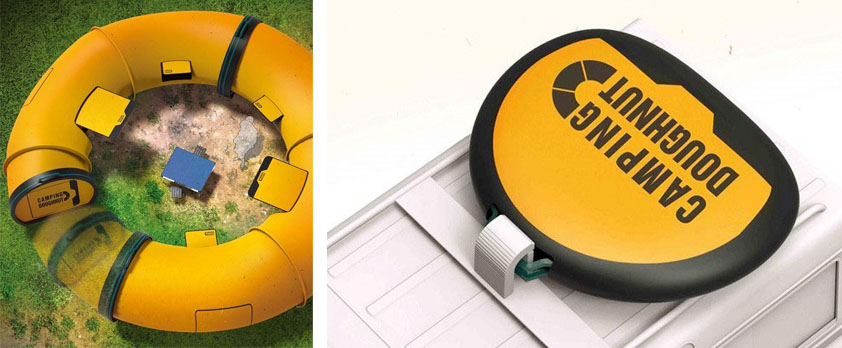 你愛吃甜甜圈?愛去露營?有沒有想過將兩者結(jié)合在一起?韓國設(shè)計者 Sungha Lim, Hyunmook Lim 和 Han Kim 為我們帶來一款外形酷似甜甜圈的帳篷(Camping Doughnut),前所未見。它看似巨大,可折疊起來方便運輸。它由兩截組成,內(nèi)含六個隔開空間,適合 2-4 人豪華出行,可以根據(jù)需要任意選擇拼接方式。