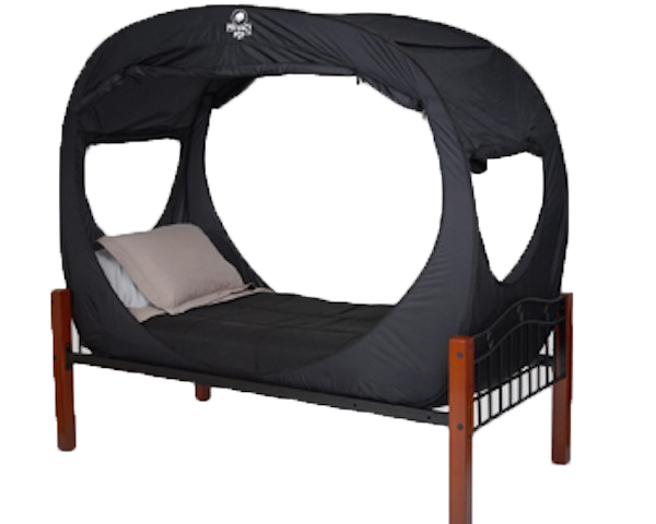 如果你苦于沒有一個屬于自己的私人空間,「privacy pop」帳篷無疑會滿足你的要求,讓你即使是在合用的臥室中也能享受到奢侈的私人空間。其兩側(cè)的拉鏈窗為使用者提供必要的光線和空氣流通。這個可拆卸的帳篷可以容納兩張雙人床或兩張雙人大床,同時它還可以折疊起來便于運輸和攜帶,此設(shè)計有點類似我們夏天用的“蚊帳”,只是使用材料不同而已,私密性更好。另外方便攜帶。